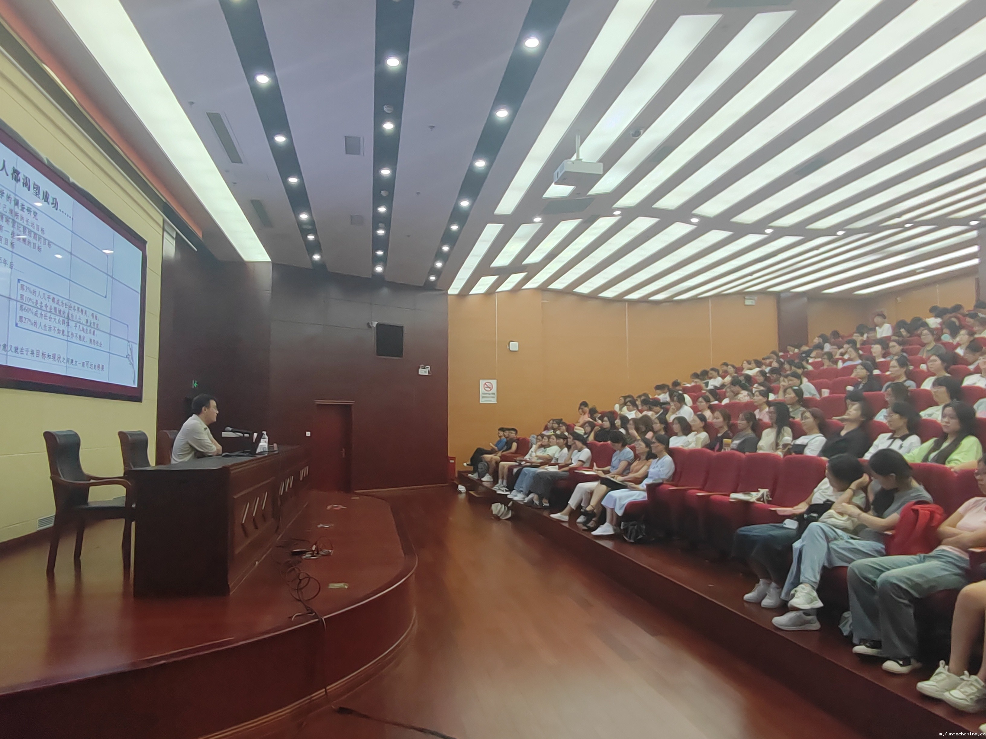 9月20日,我院“正青春”思政大讲坛暨2024级新生入学教育活动在时学楼报告厅举行。苏州健雄职业技术学院辅导员李志辉老师受邀为2024级全体新生,作题为《精策未来,笃行致远——新时代大学生职业规划精英启航》的专题讲座,各分会场师生通过直播方式聆听讲座。