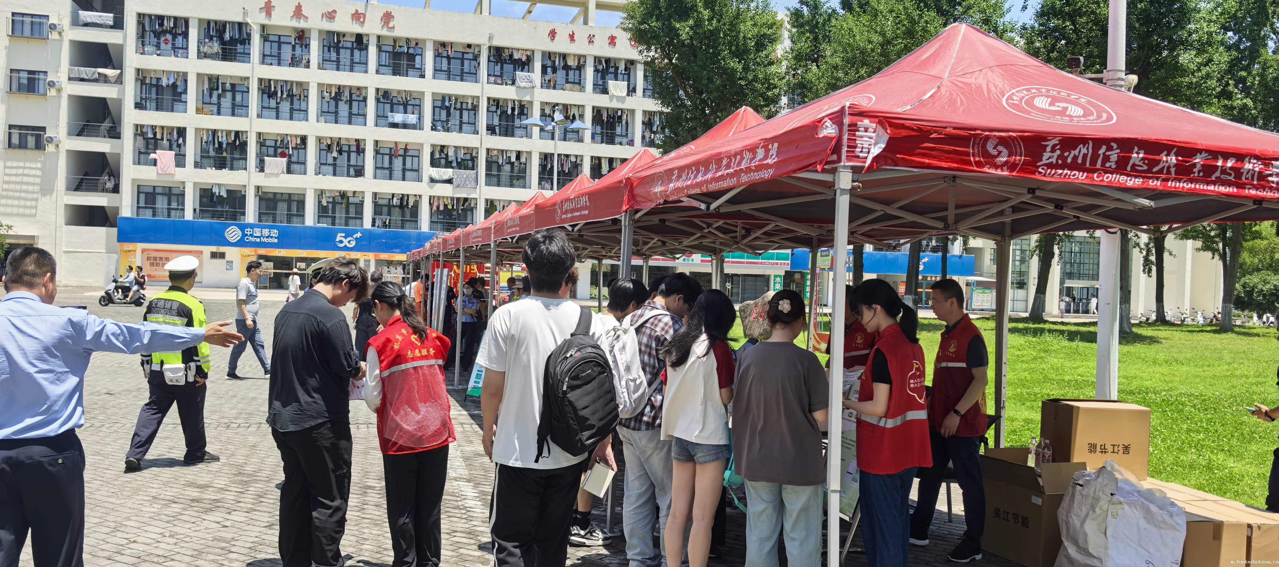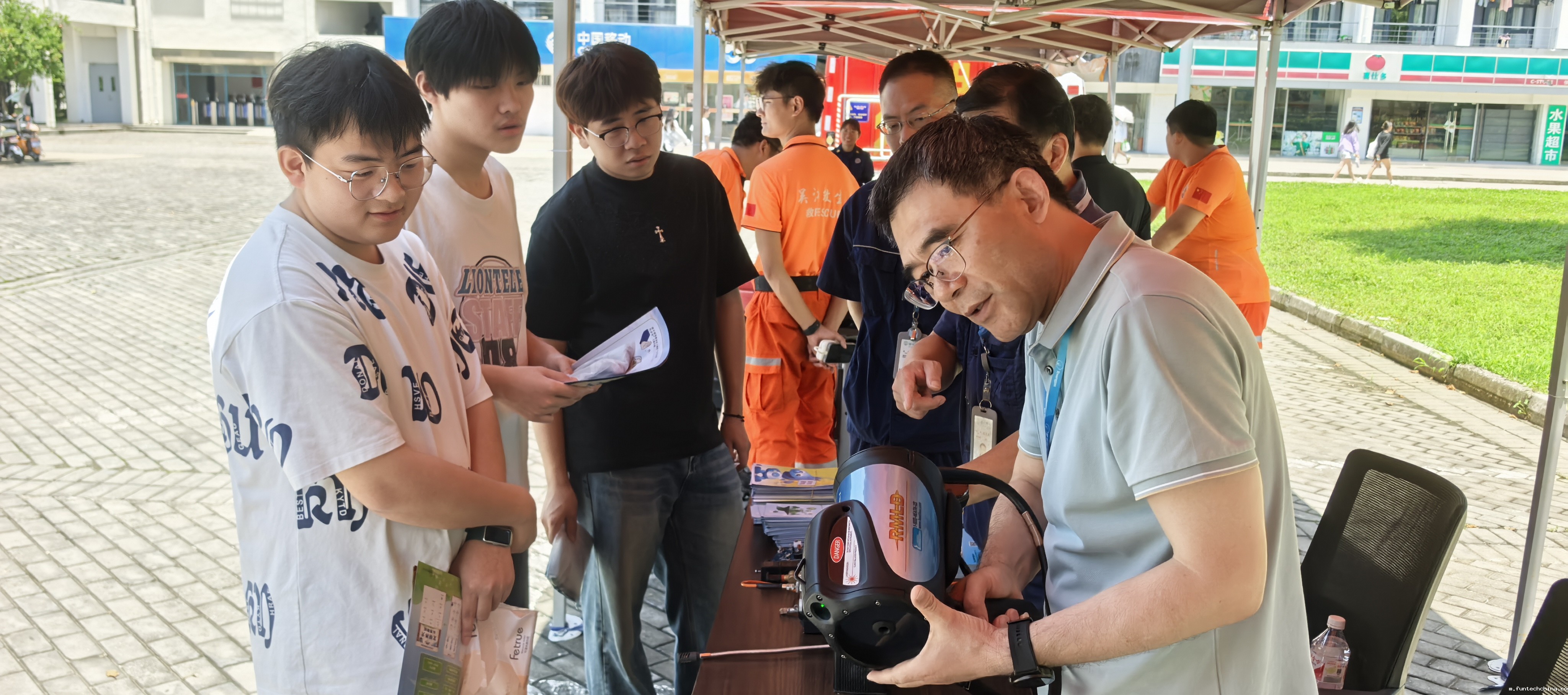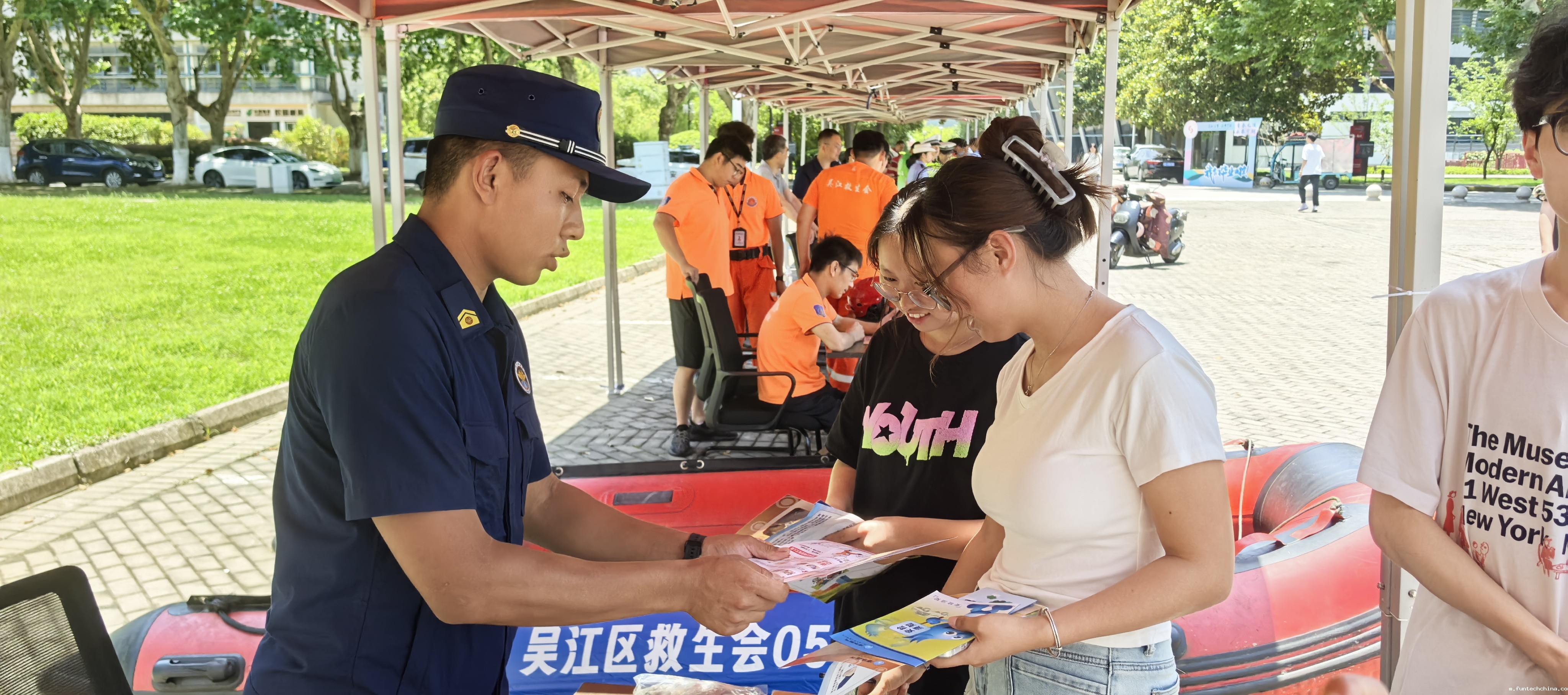 今年6月是第24个全国"安全生产月",主题为"人人讲安全、个个会应急——查找身边安全隐患"。6月16日,我院安保处联合吴江区消防大队,吴江区公安局松陵派出所、交警大队松陵中队,吴江区机关事务管理中心, 吴江区水上救生协会,港华燃气公司等多家单位,在学生食堂广场共同开展了"安全宣传咨询日"活动。作为"安全生产月"的重要内容,此次活动吸引了众多师生参与,现场师生热情互动,安全知识普及效果良好。